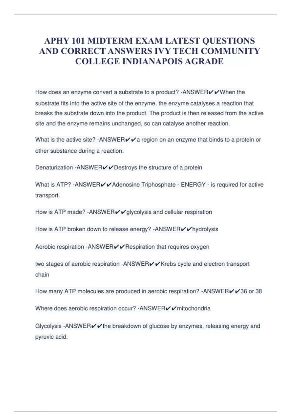 APHY 101 MIDTERM EXAM LATEST QUESTIONS AND CORRECT ANSWERS IVY TECH COMMUNITY COLLEGE INDIANAPOIS AGRADE
