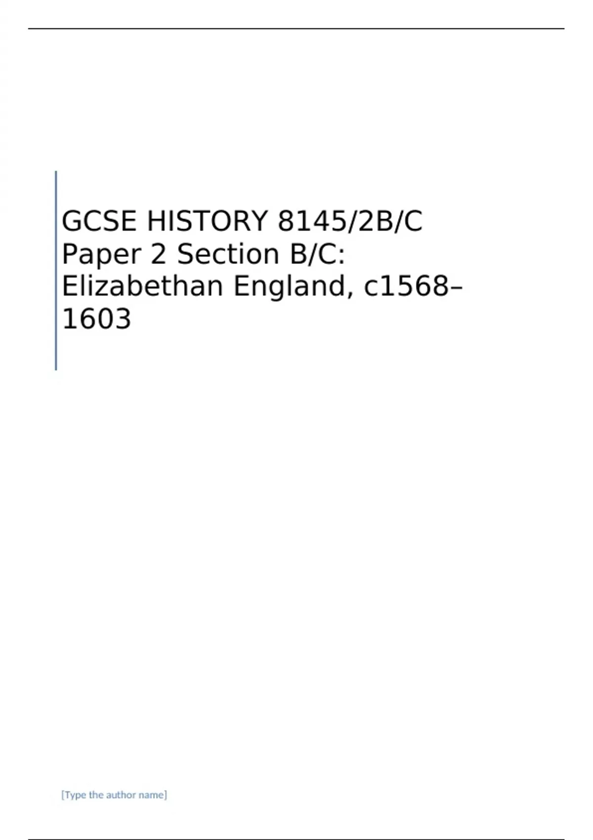 GCSE HISTORY 8145/2B/C Paper 2 Section B/C: Elizabethan England, c1568–1603