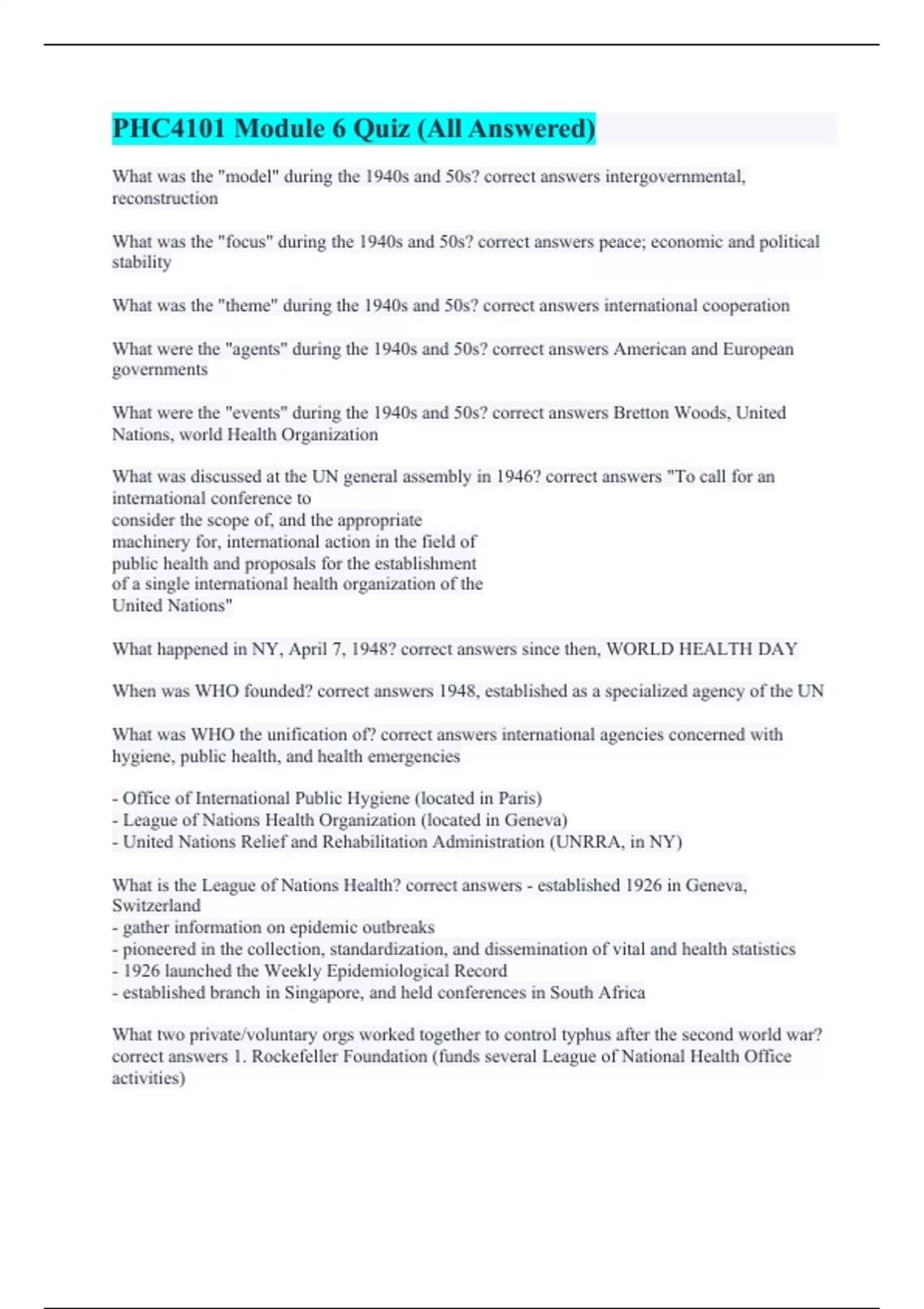 PHC4101 Module 6 Quiz (All Answered)