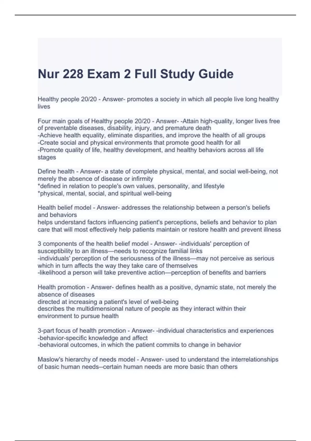 Nur 228 Exam 2 Full Study Guide Questions and Answers