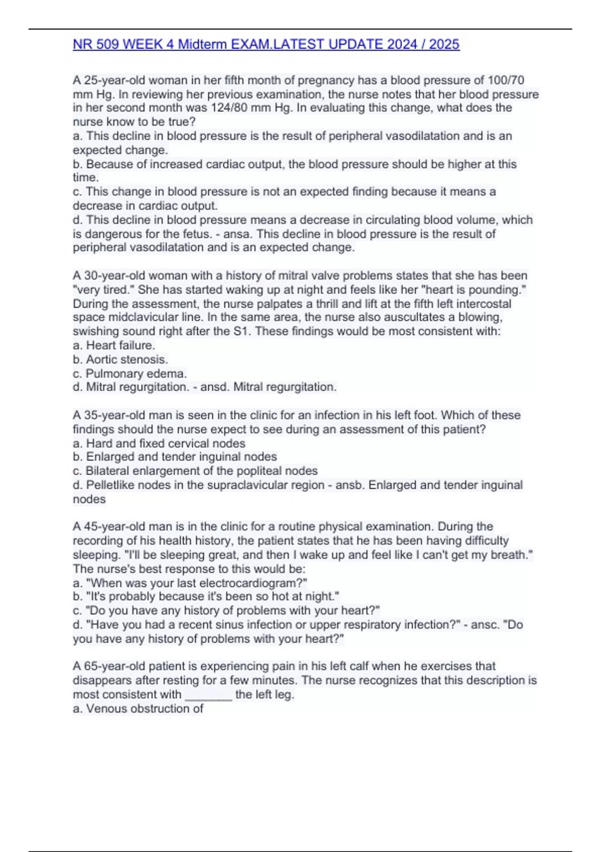 d. Mitral regurgitation. - ansd. Mitral regurgitation.