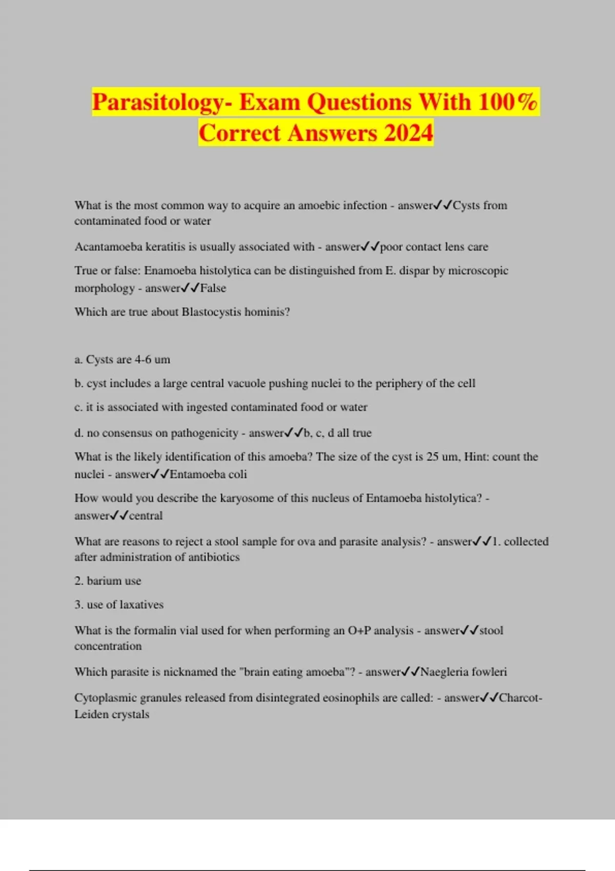 Parasitology- Exam Questions With 100% Correct Answers 2024