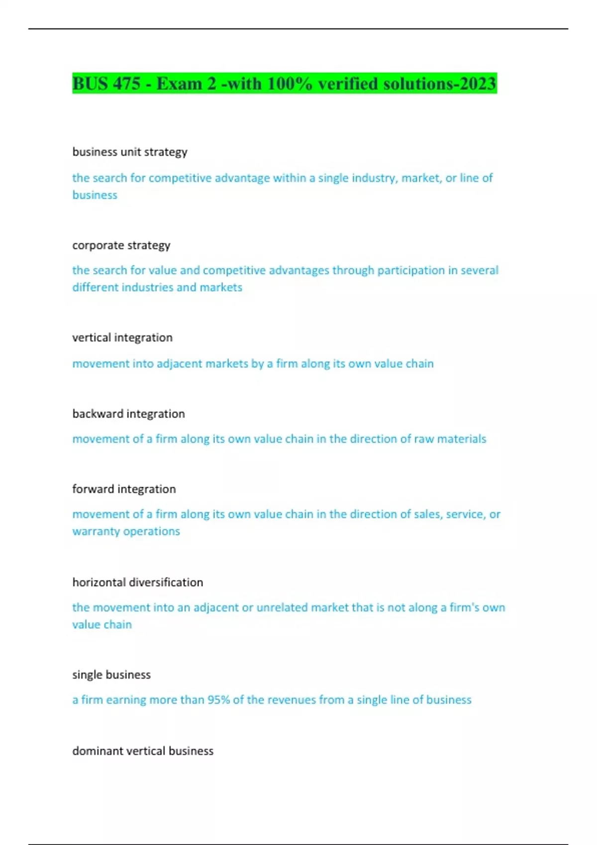 BUS 475 - Exam 2 -with 100% verified solutions-2023