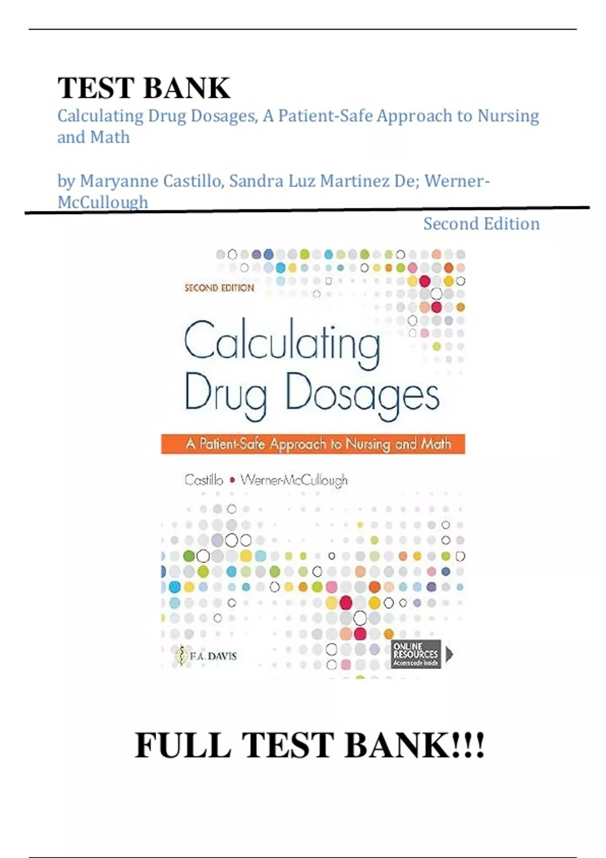 Test Bank For Calculating Drug Dosages A Patient-Safe Approach to Nursing and Math Second Edition by Maryanne Castillo, Sandra Luz Martinez De; Werner-McCullough||ISBN NO:10,1719641226||ISBN NO:13,978-1719641227||All Chapters||A+, Guide.