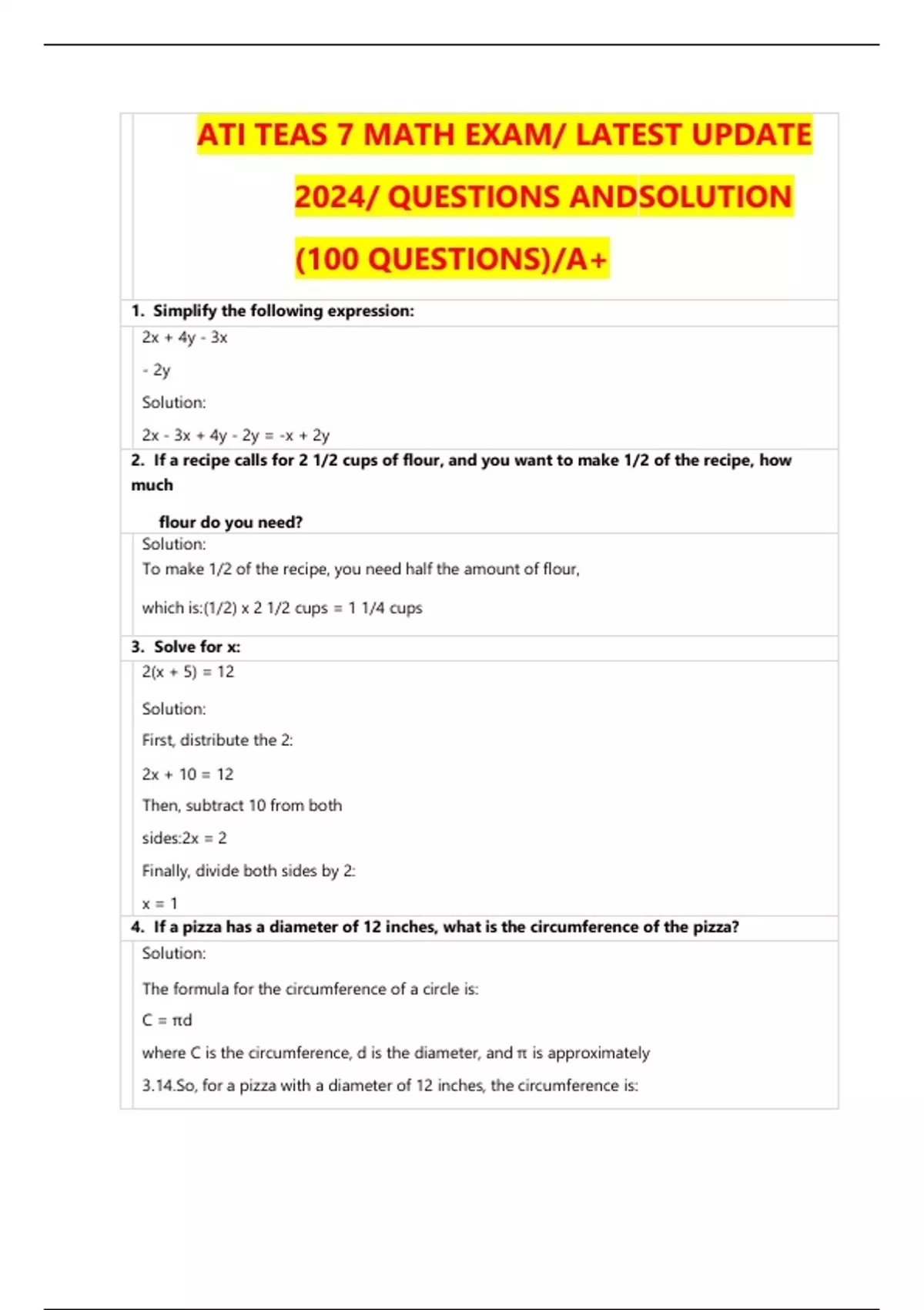 ATI TEAS 7 MATH EXAM/ LATEST UPDATE