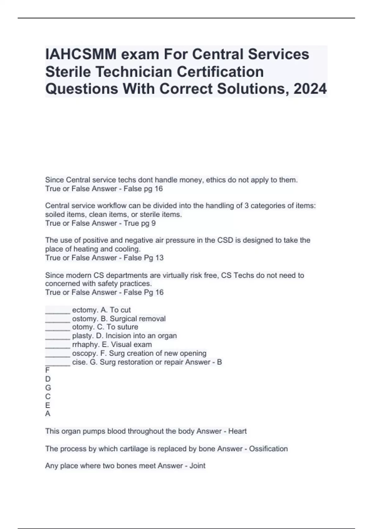 IAHCSMM exam For Central Services Sterile Technician Certification Questions With Correct Solutions, 2024