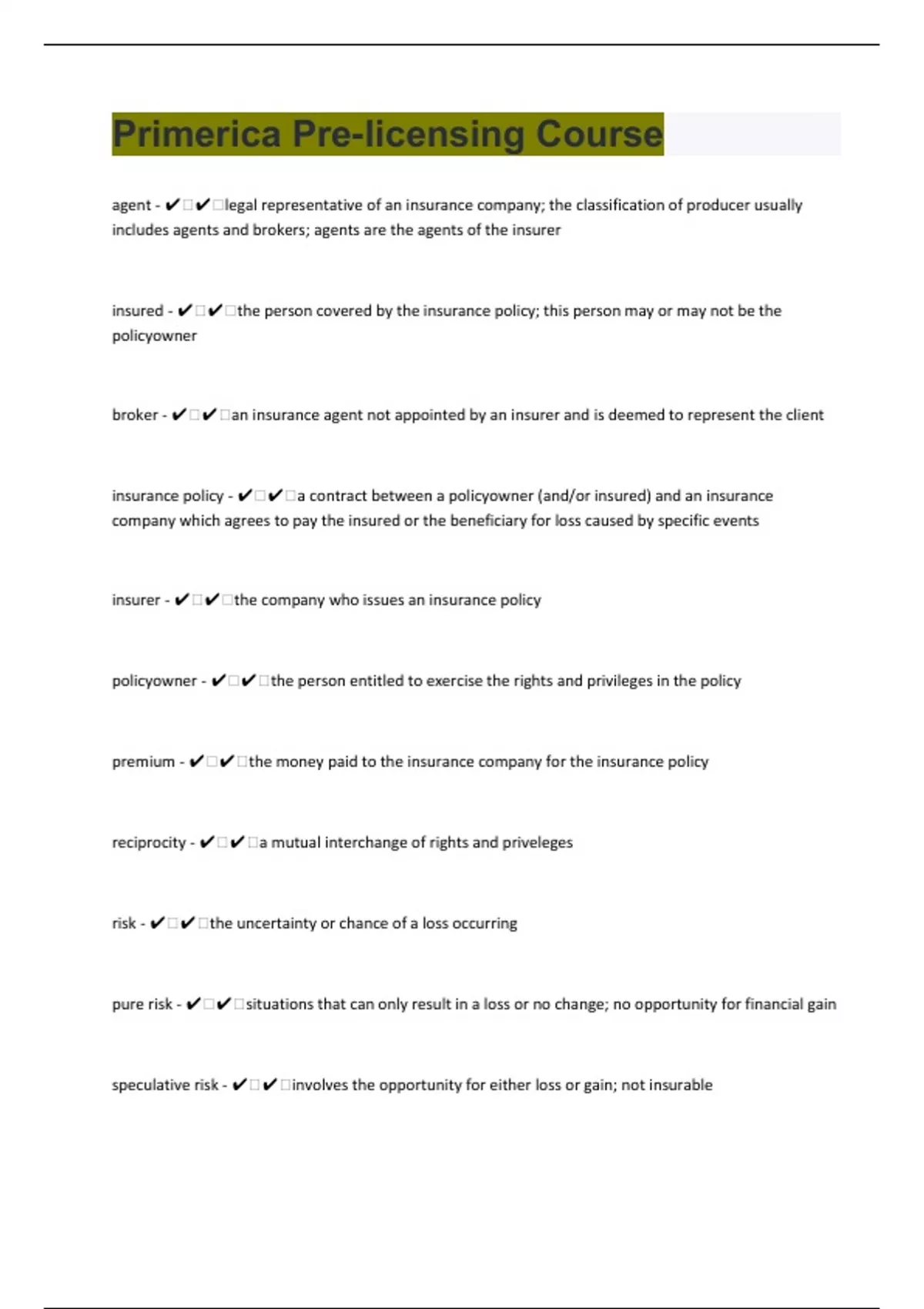 Primerica Pre-licensing Course 290 Questions with 100% Correct Answers | Updated & Verified