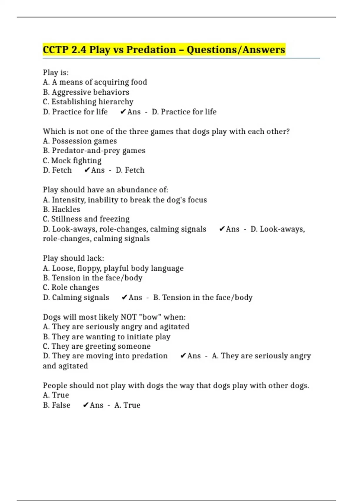 CCTP 2.4 Play vs Predation – Questions/Answers