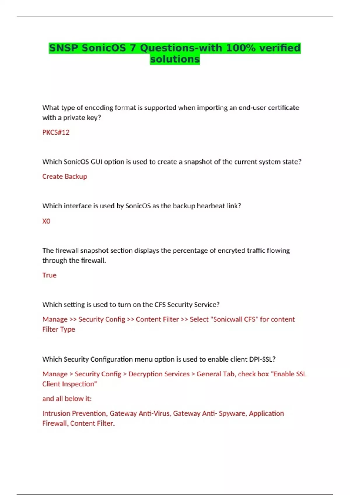 SNSP SonicOS 7 Questions-with 100% verified solutions