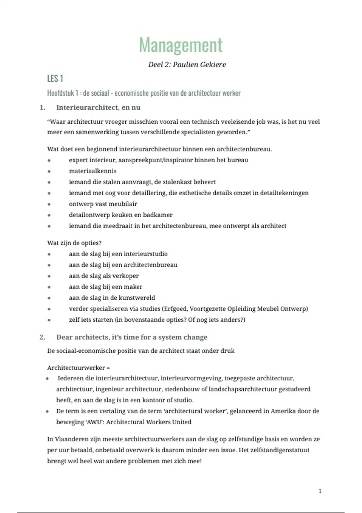 Hoofdstuk 1 : de sociaal - economische positie van de architectuur werker
