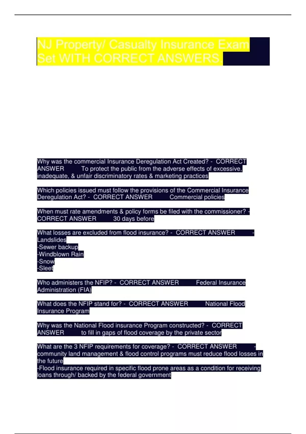 What are the 3 NFIP requirements for coverage? - CORRECT ANSWER -