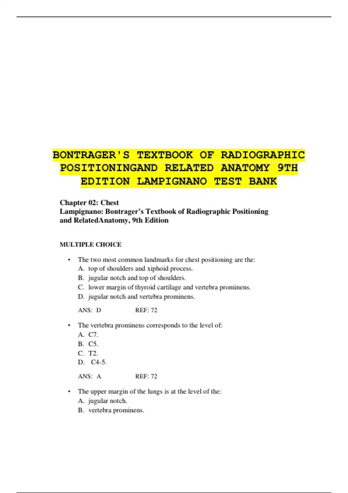 Lampignano: Bontrager’s Textbook of Radiographic Positioning