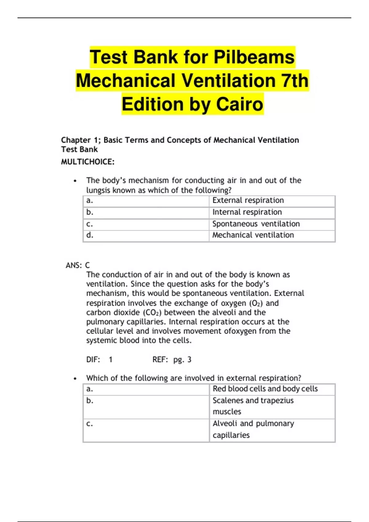 Chapter 1; Basic Terms and Concepts of Mechanical Ventilation