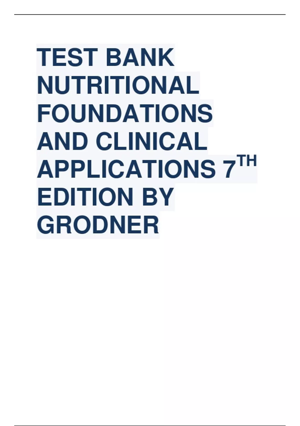 TEST BANK NUTRITIONAL FOUNDATIONS AND CLINICAL APPLICATIONS 7TH EDITION BY GRODNER