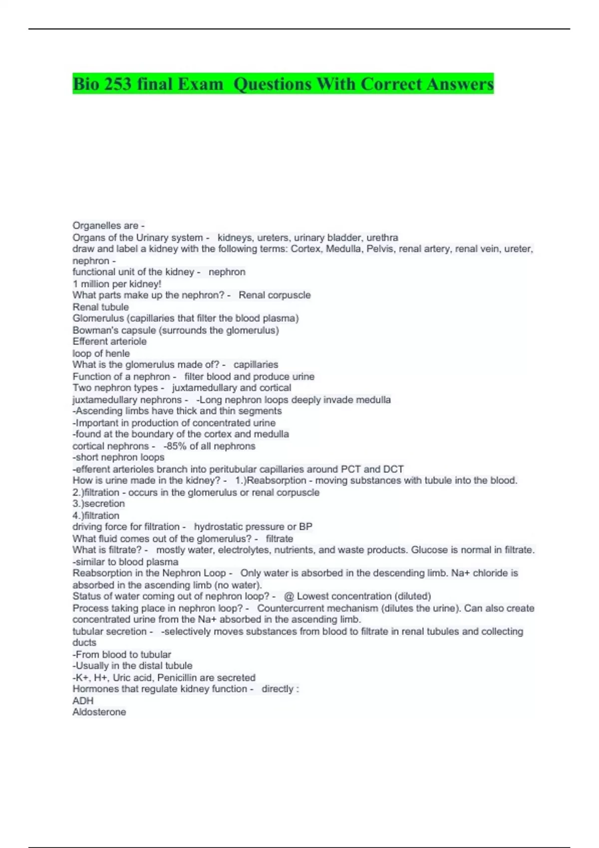 Bio 253 final Exam Questions With Correct Answers