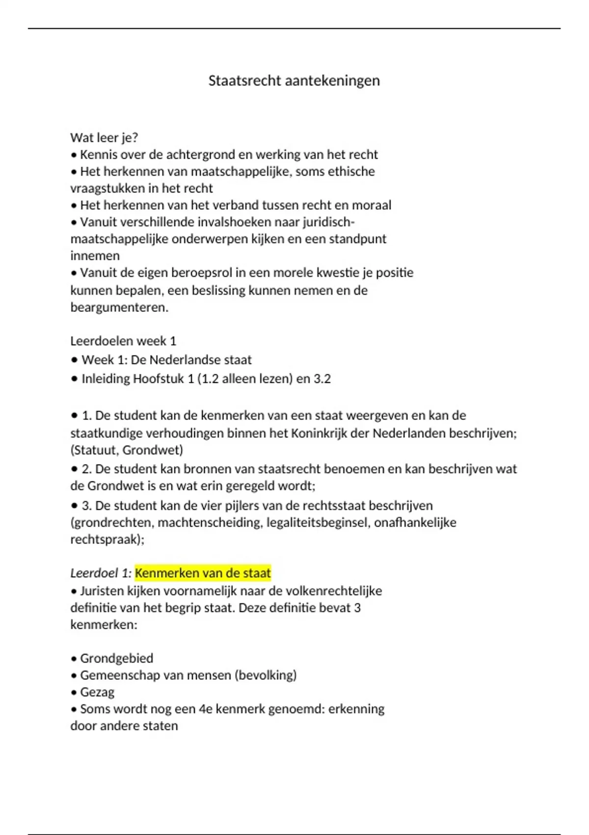 Leerdoel 1: Kenmerken van de staat