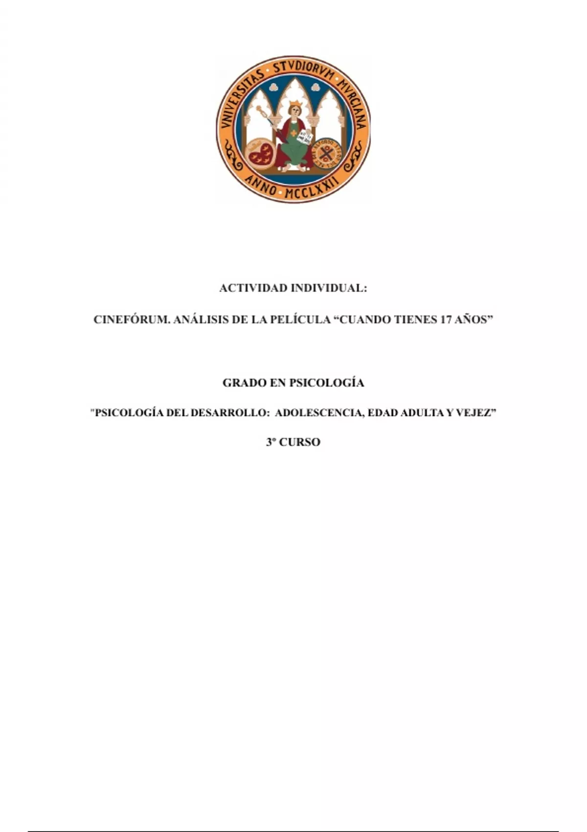 CINEFÓRUM. ANÁLISIS DE LA PELÍCULA “CUANDO TIENES 17 AÑOS”