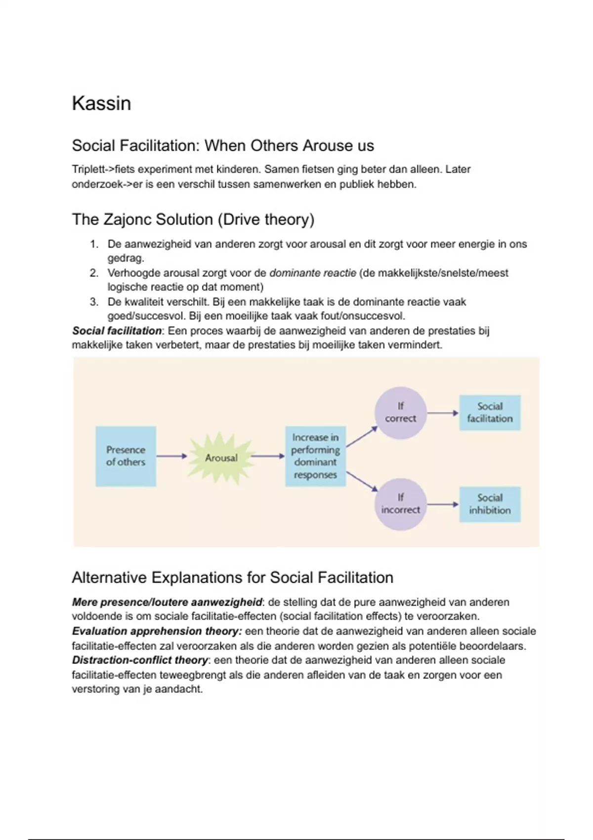 1. De aanwezigheid van anderen zorgt voor arousal en dit zorgt voor meer energie in ons