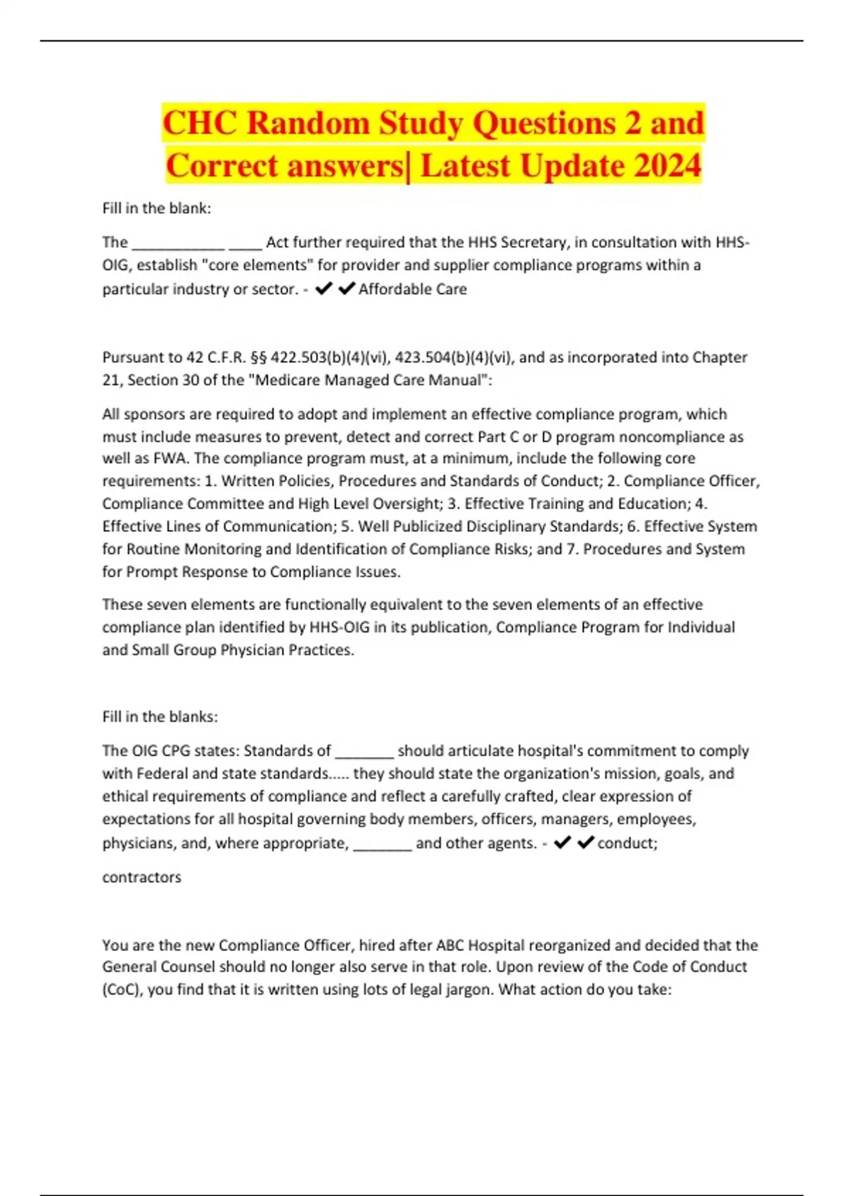 CHC Random Study Questions 2 and Correct answers| Latest Update 2024