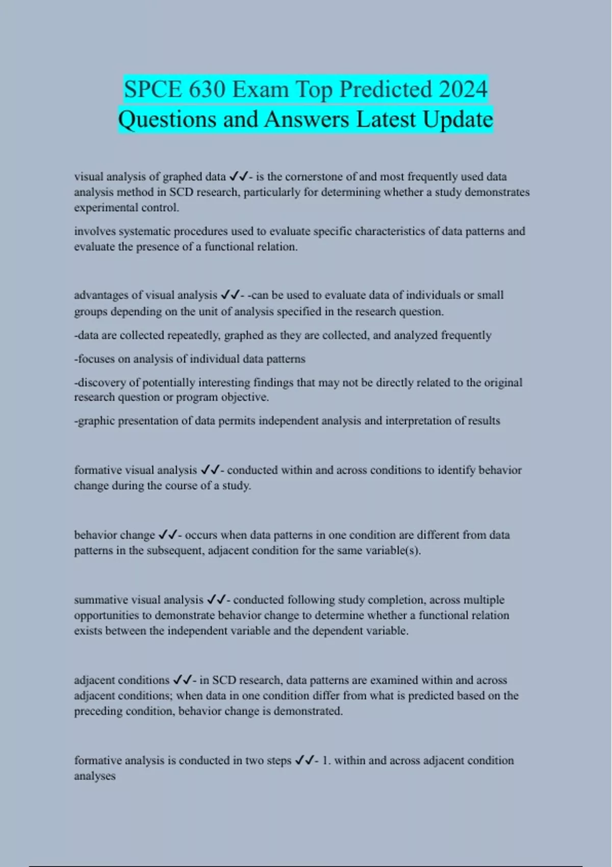 SPCE 630 Exam Top Predicted 2024 Questions and Answers Latest Update