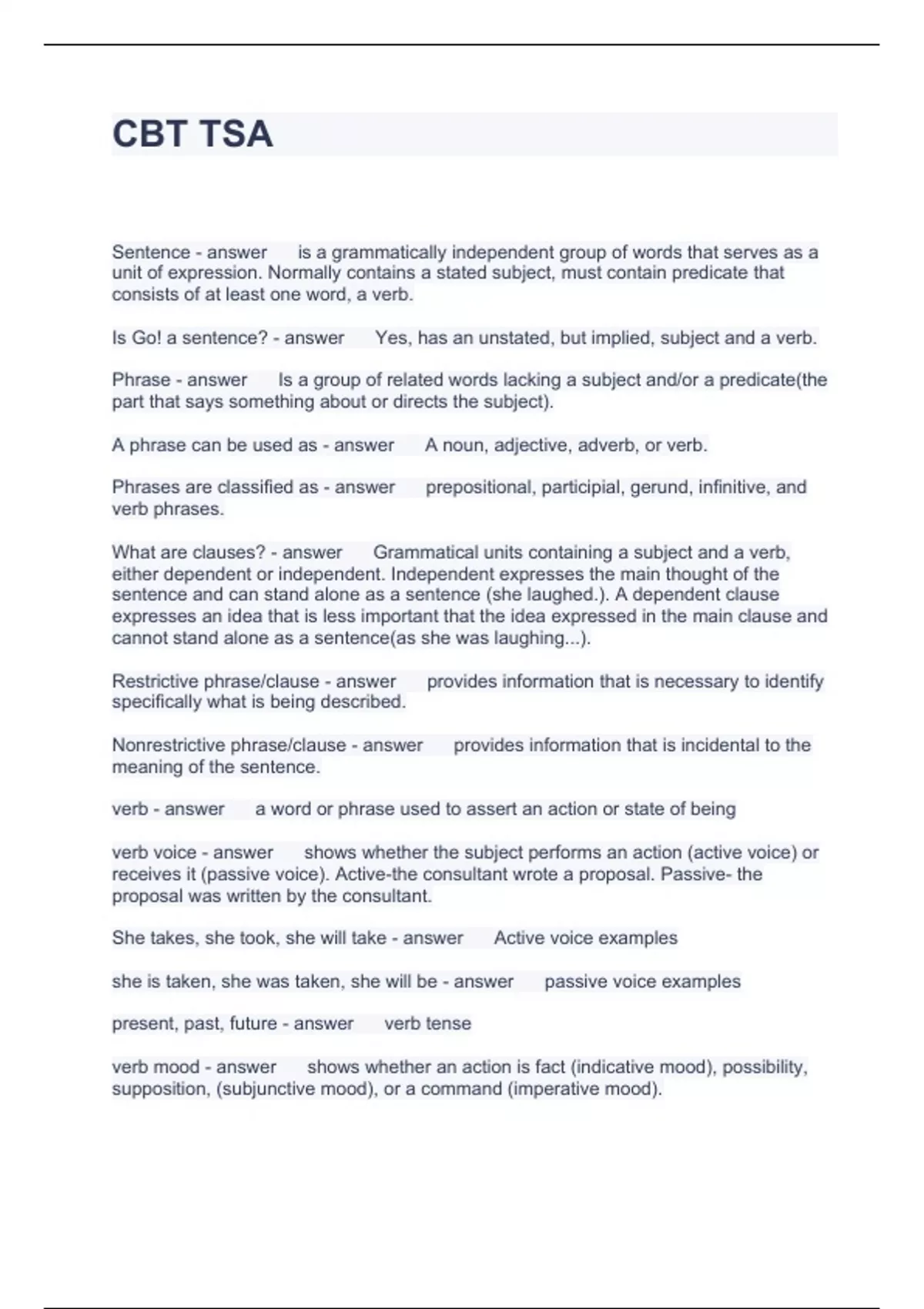 CBT TSA QUESTIONS WITH ACCURATE ANSWERS
