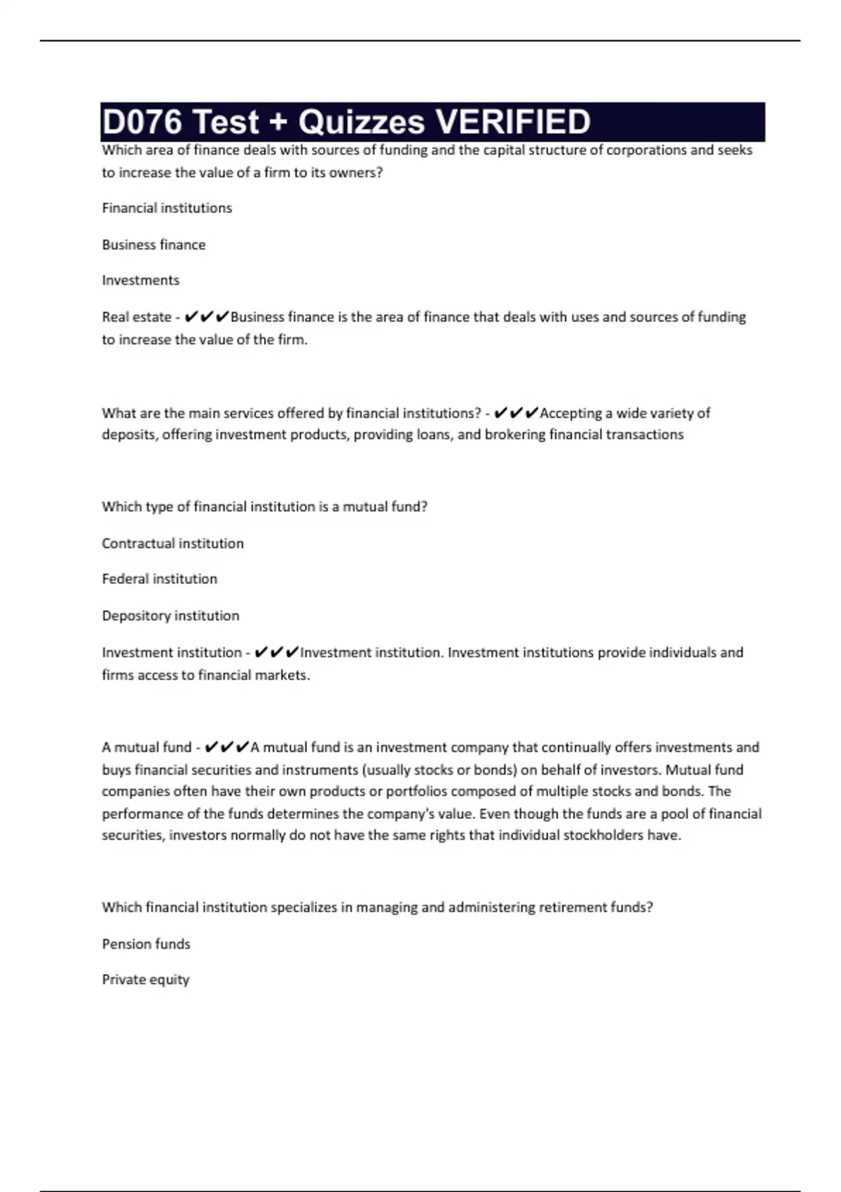 d076 test quizzes verified