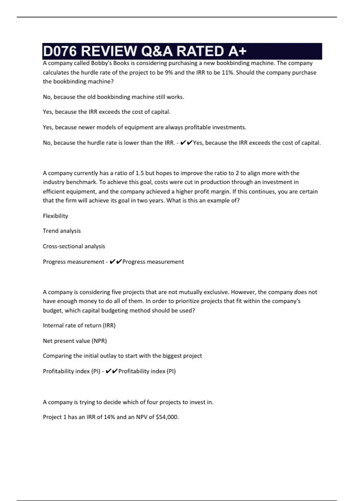 D076 REVIEW Q&A RATED A+