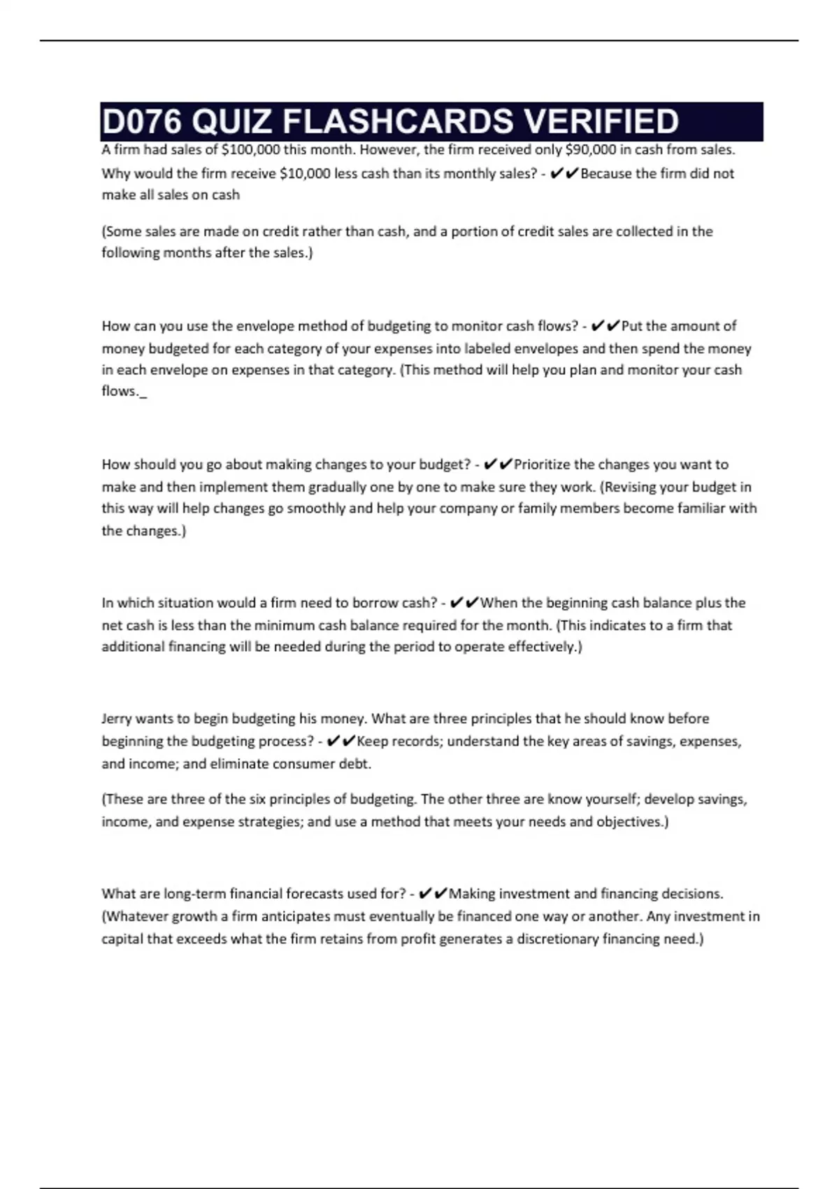 d076 quiz flashcards verified