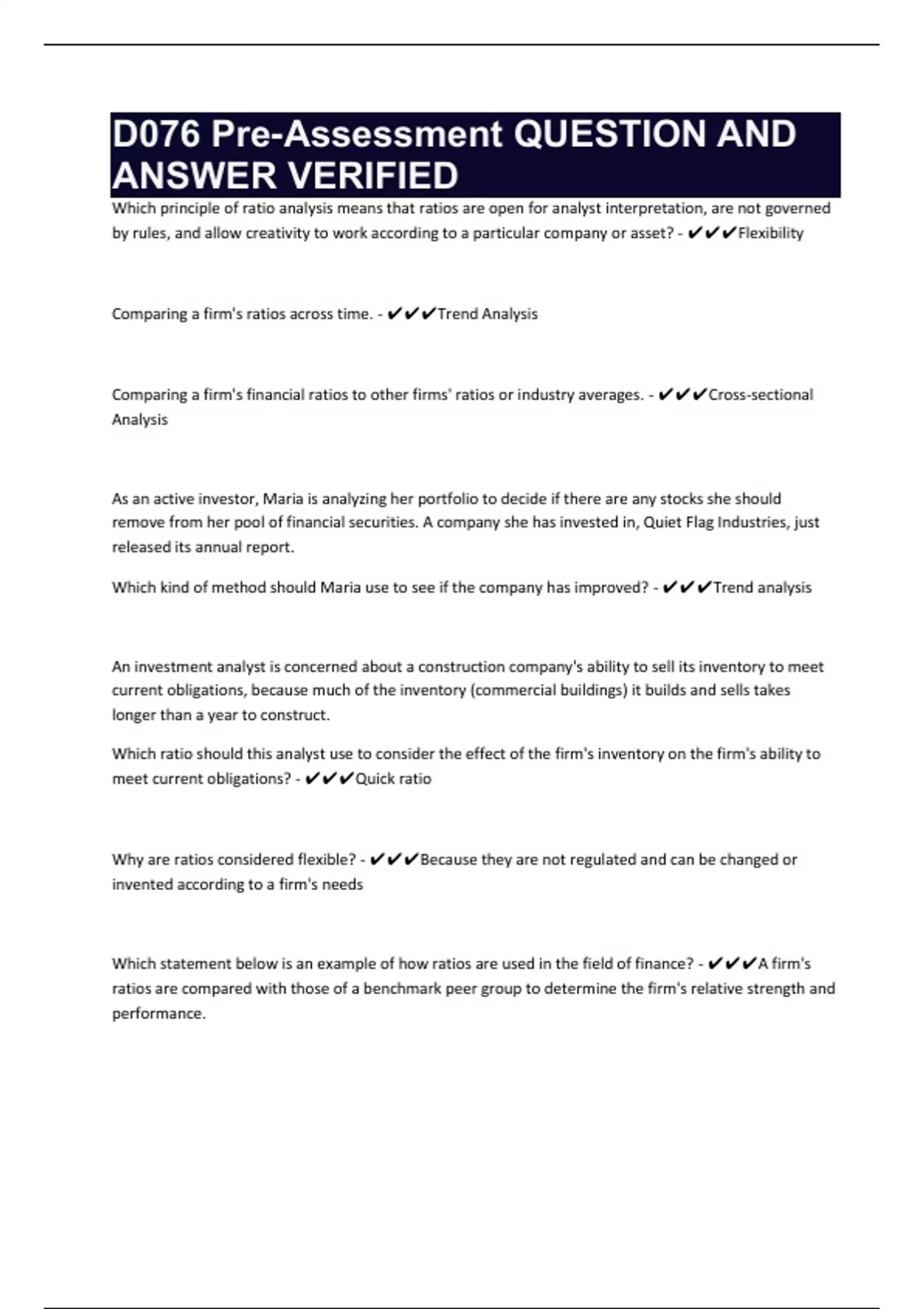 D076 Pre-Assessment QUESTION AND ANSWER VERIFIED