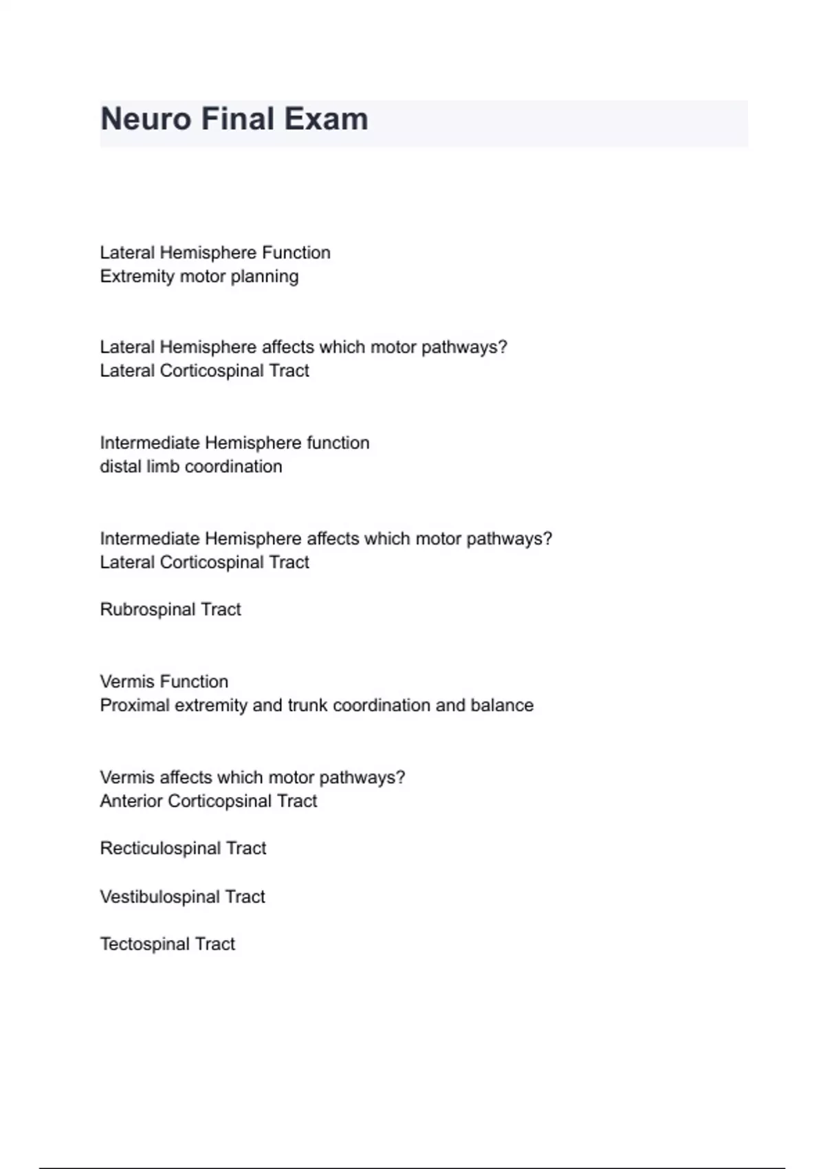 Neuro Final Exam questions with correct answers