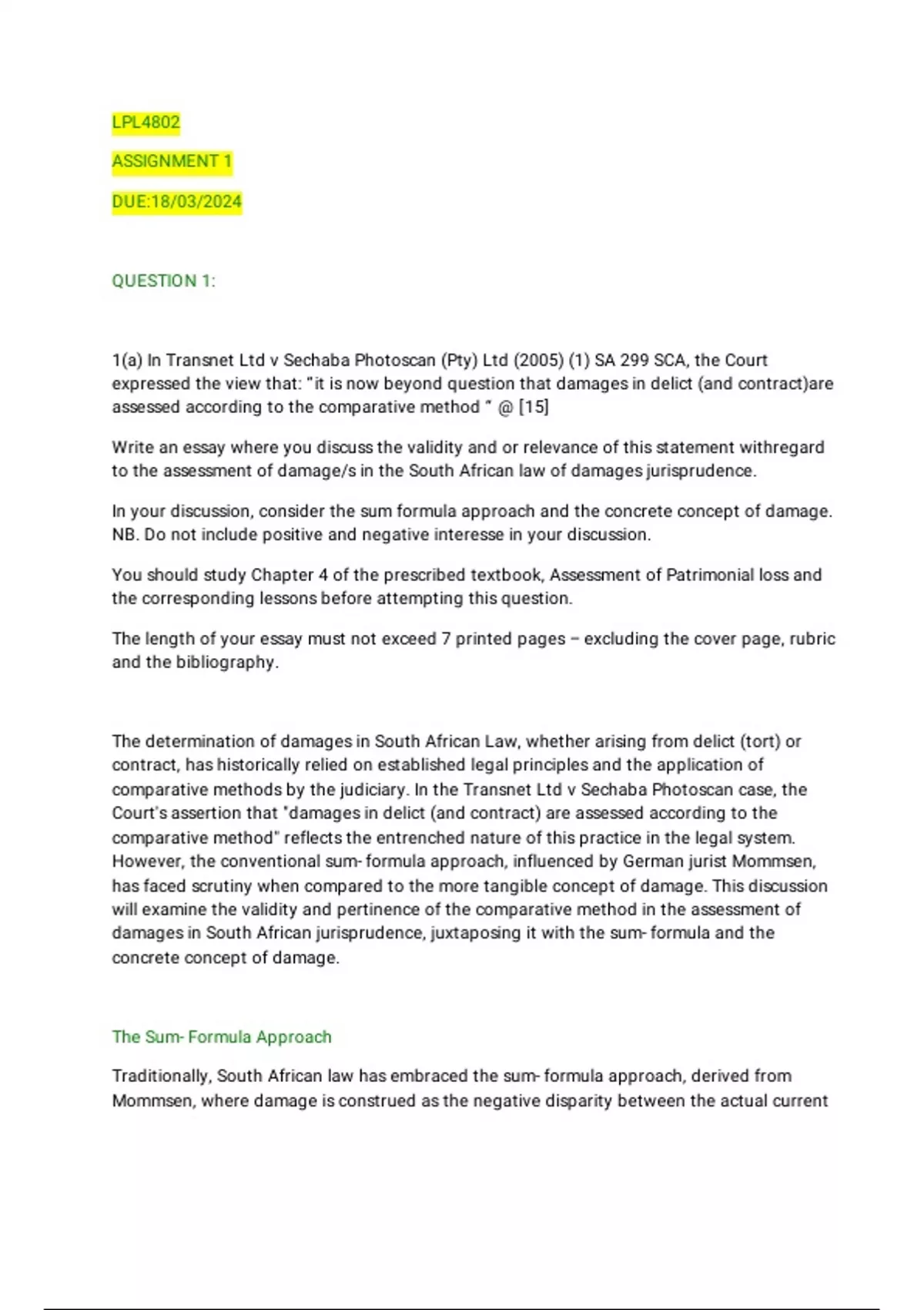 Thedeter minationofdamagesi nSout hAf r
