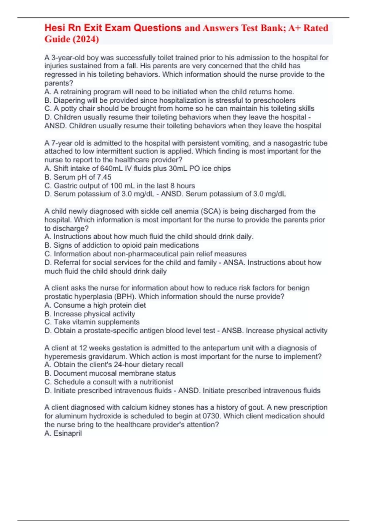 Hesi Rn Exit Exam Questions and Answers Test Bank; A+ Rated