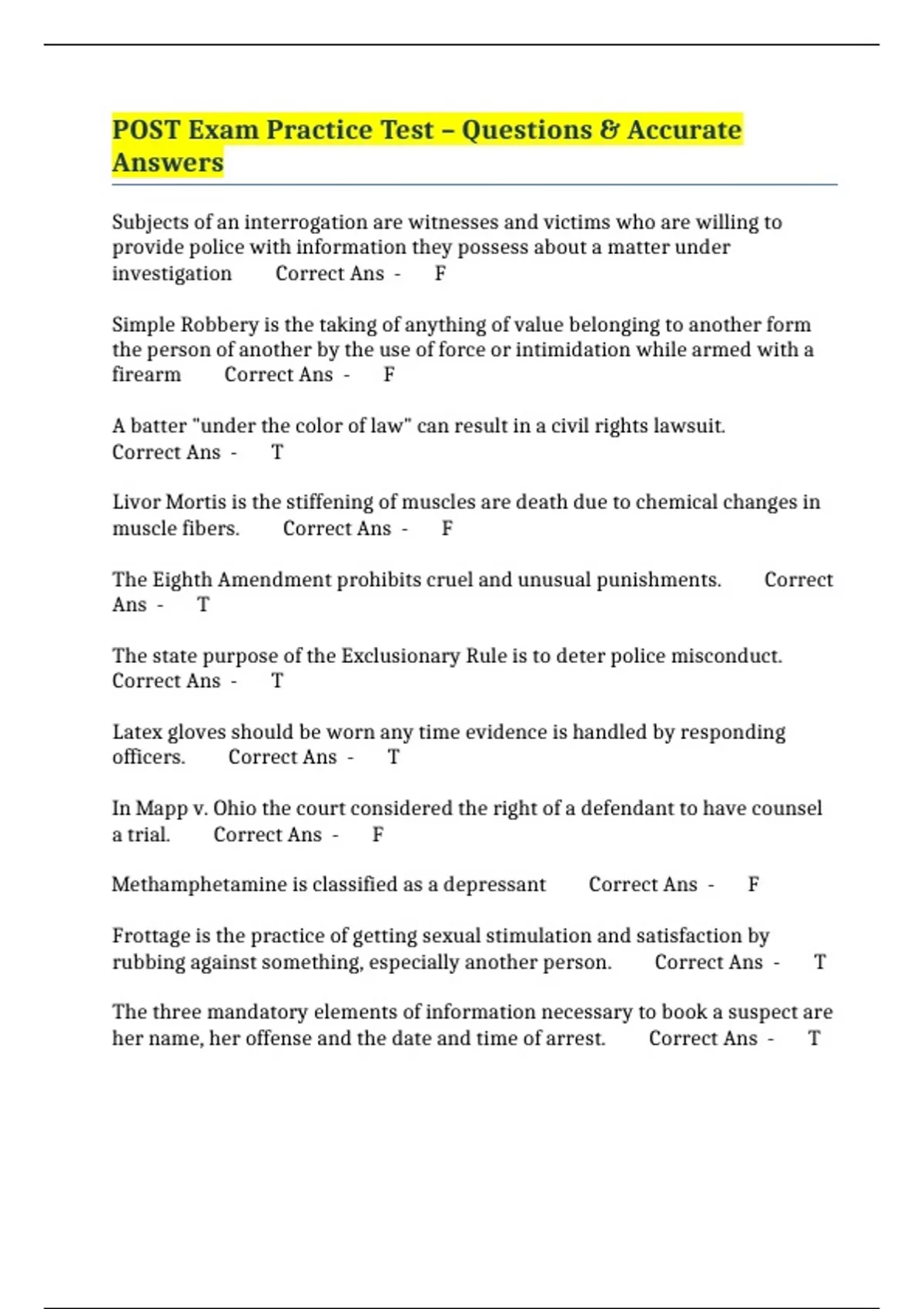 POST Exam Practice Test – Questions & Accurate Answers