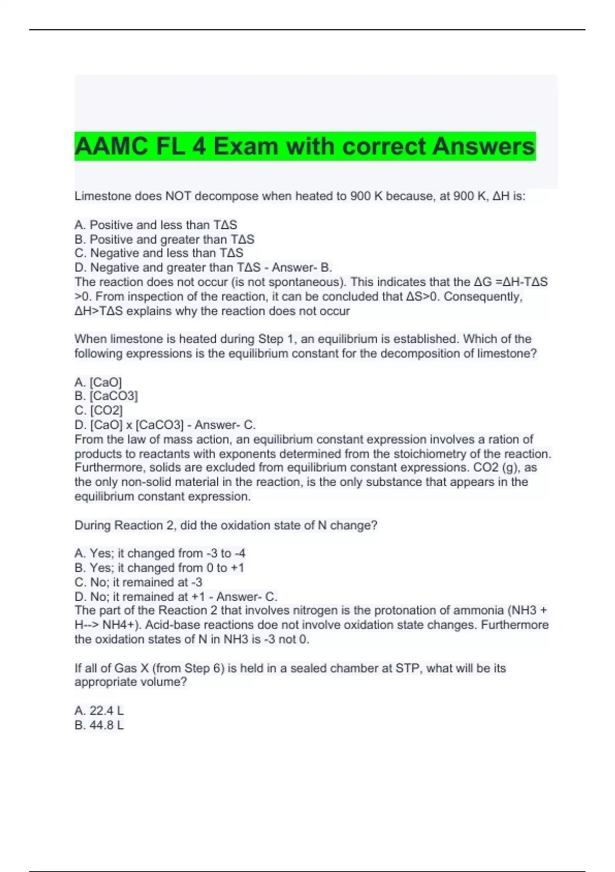 AAMC FL 4 Exam with correct Answers 100%