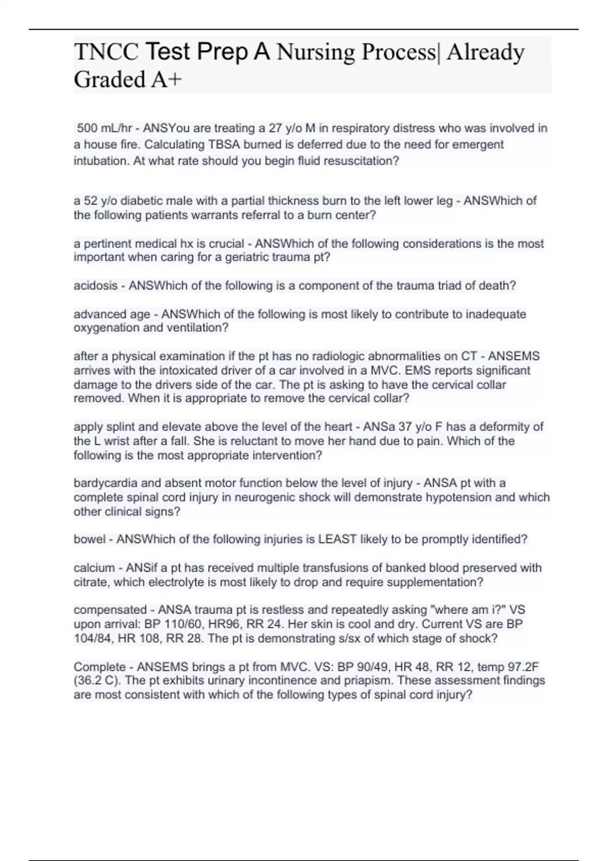 , TNCC Test Prep A Nursing Process| Already