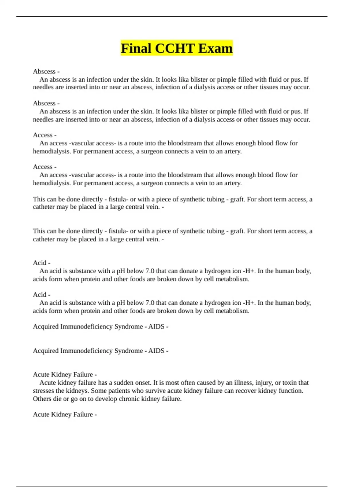 Exam of 96 pages for the course CCHT at CCHT (Final CCHT Exam.)