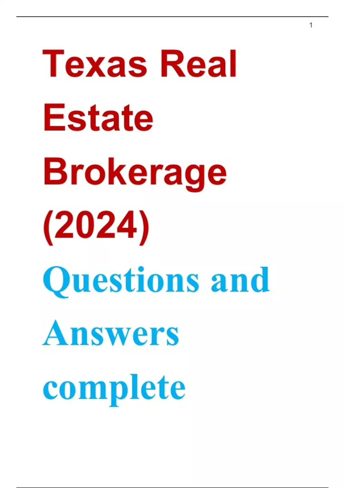 Texas Real Estate Brokerage (2024) Questions and Answers complete.