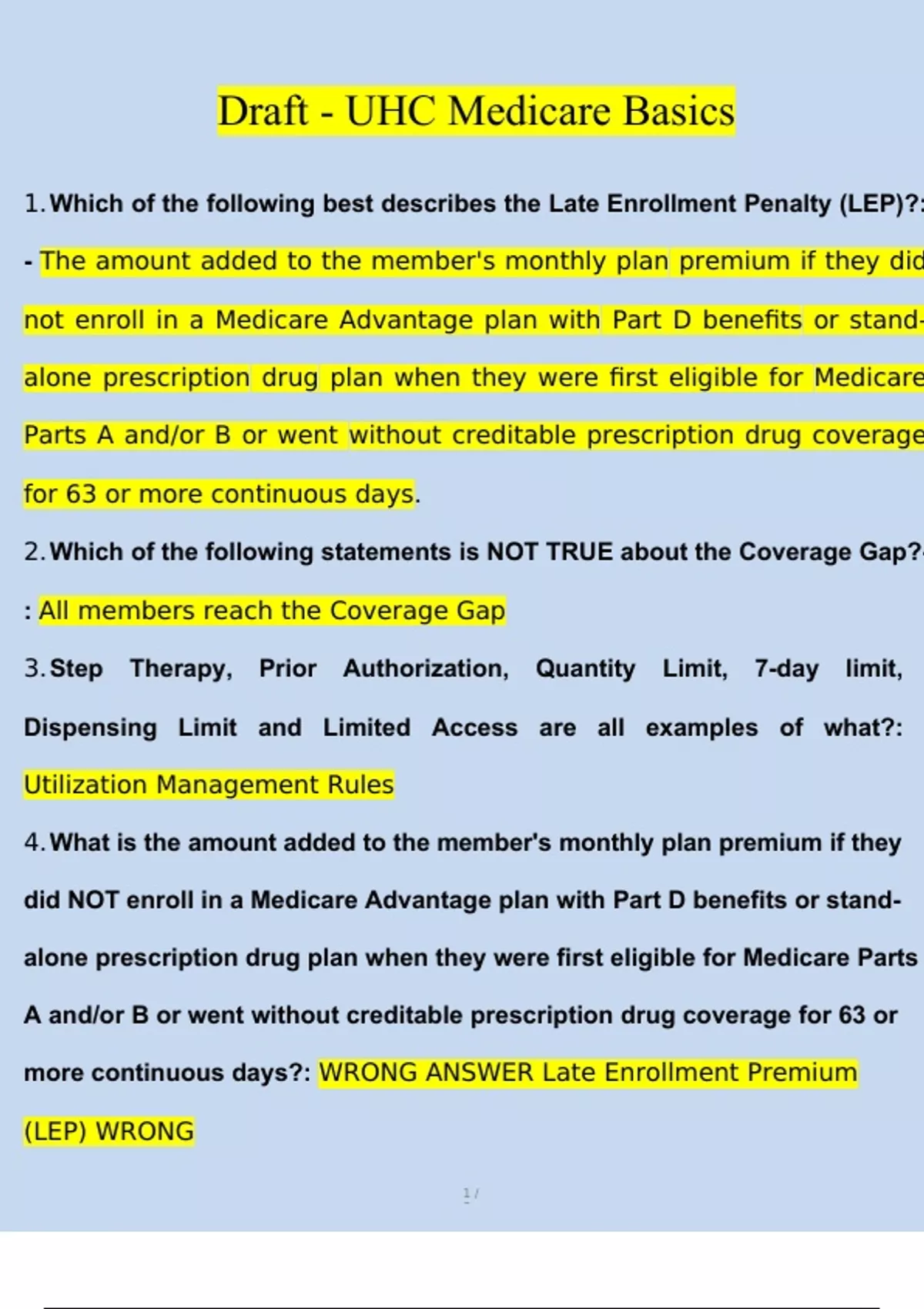 Draft - UHC Medicare Basics | Questions with 100% Correct Answers | Verified | Updated 2024