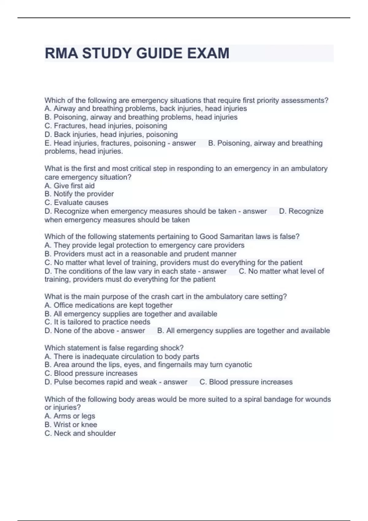 RMA STUDY GUIDE EXAM QUESTIONS AND ANSWERS 2024