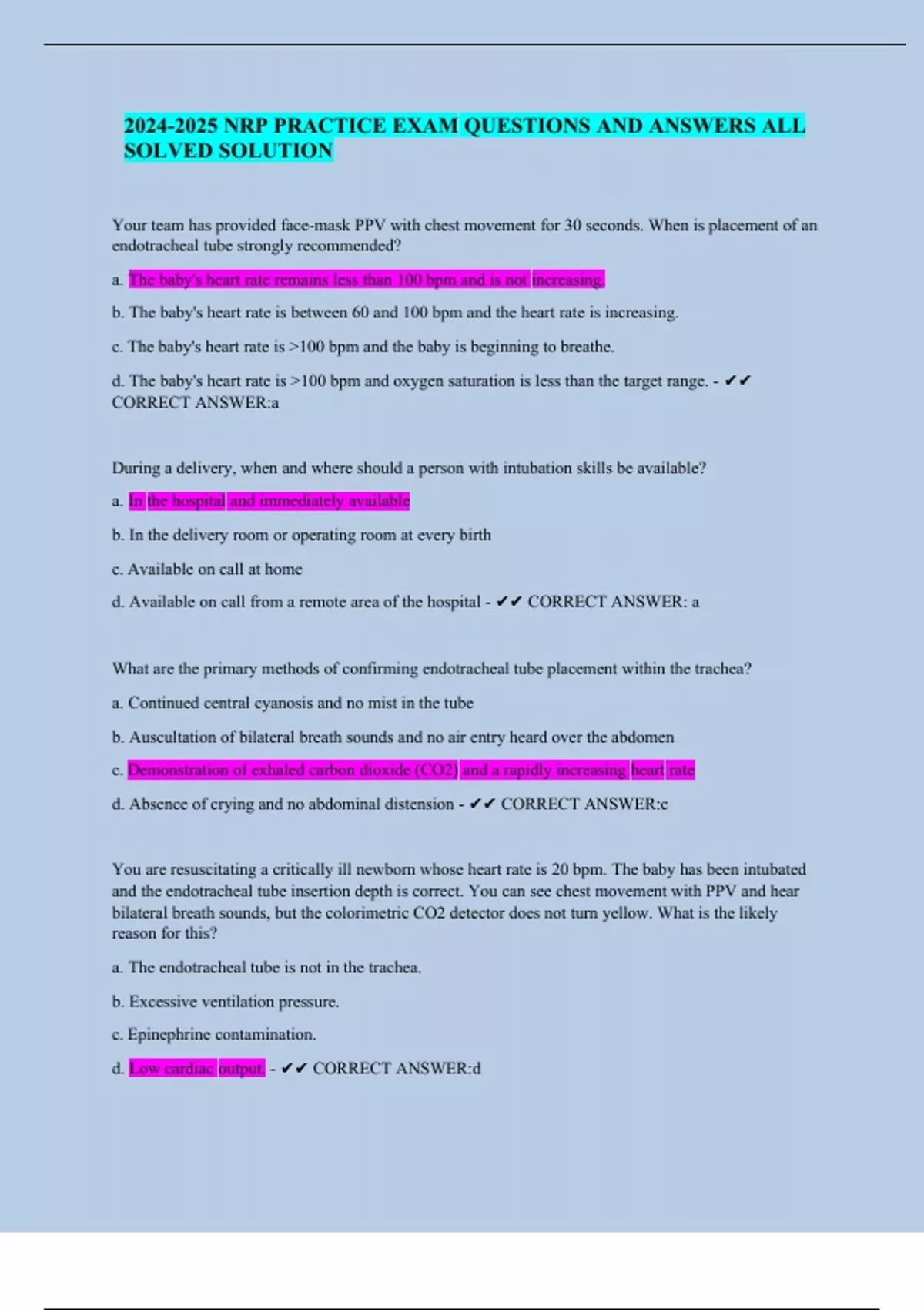 NRP PRACTICE EXAM QUESTIONS AND ANSWERS ALL SOLVED SOLUTION.docx