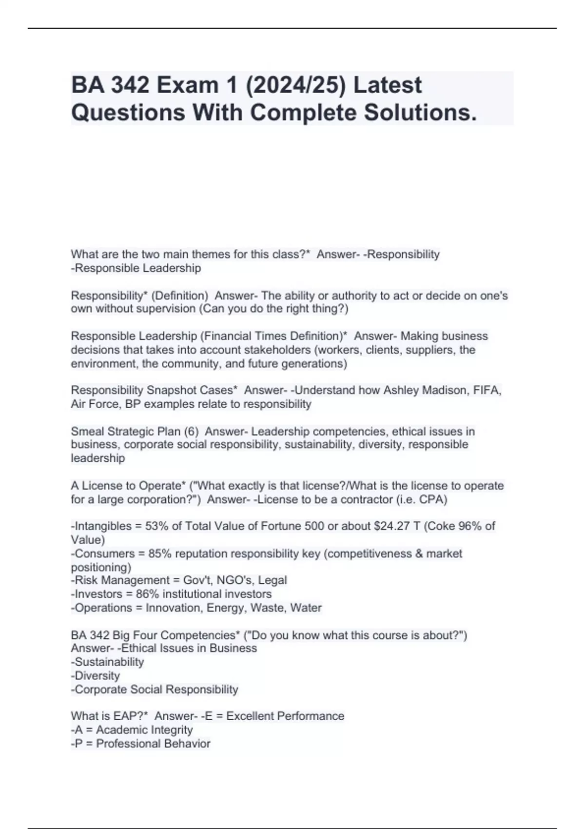 BA 342 Exam 1 (2024/25) Latest Questions With Complete Solutions.