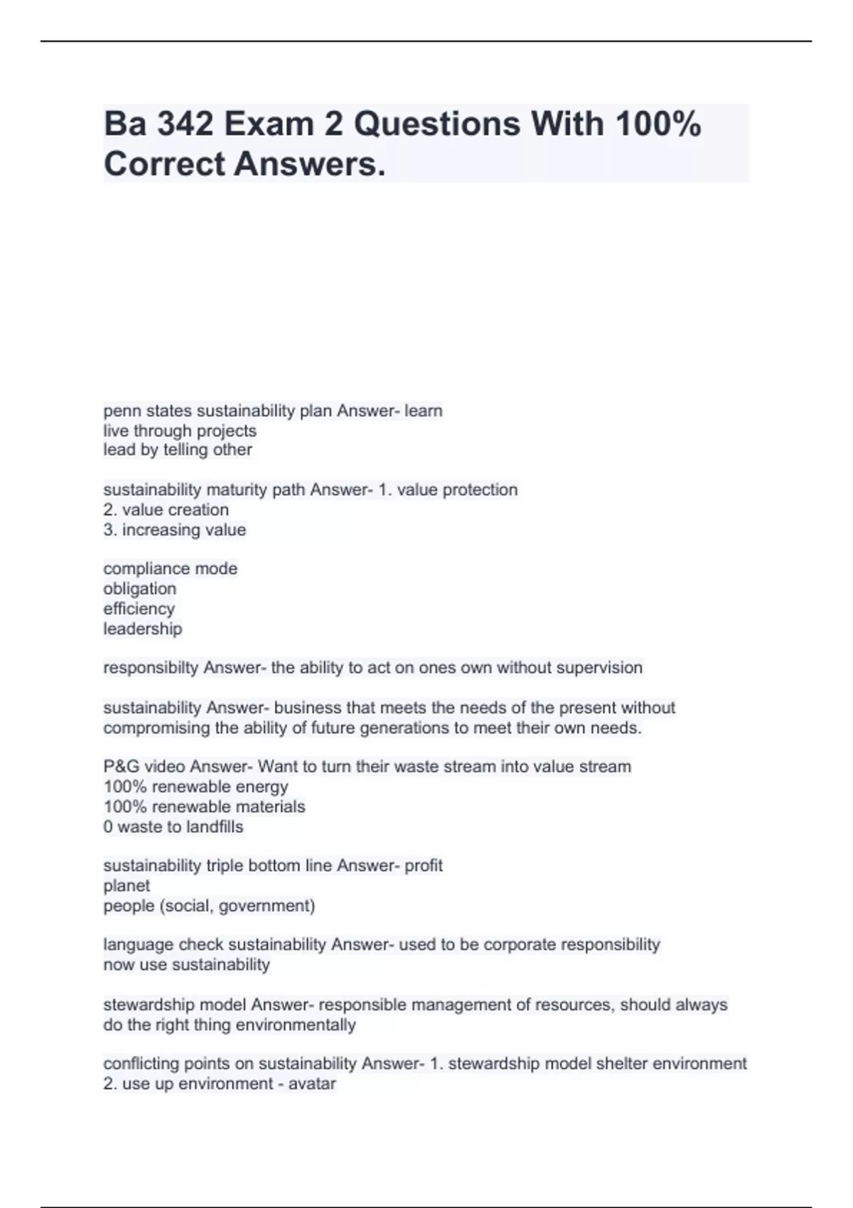 ba 342 exam 2 questions with 100 correct answers