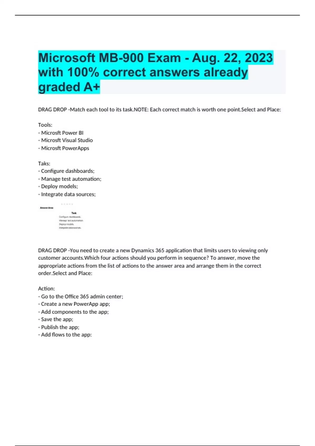 Microsoft MB-900 Exam - Aug. 22, 2023 with 100% correct answers already graded A+