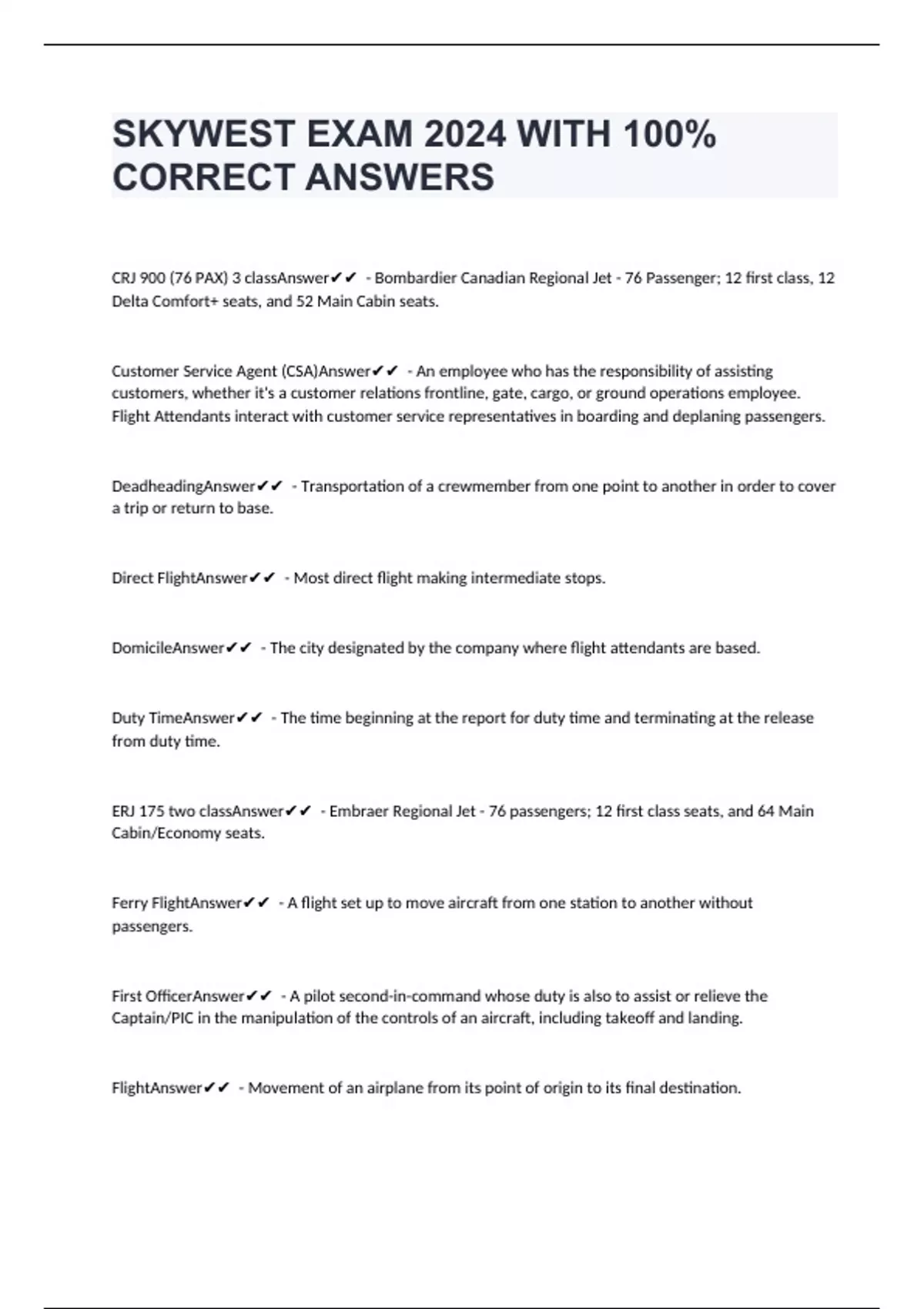 SKYWEST EXAM 2024 WITH 100% CORRECT ANSWERS