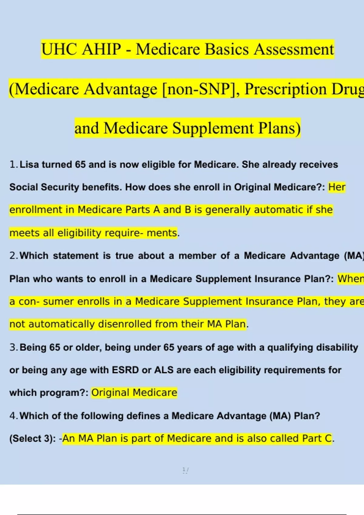 UHC 2024 AHIP - Medicare Basics Assessment (Medicare Advantage [non-SNP], Prescription Drug and Medicare Supplement Plans)