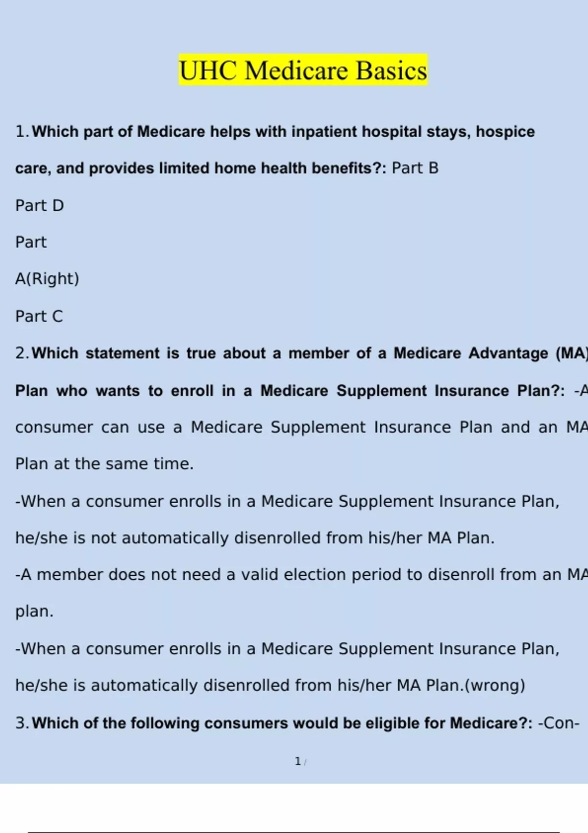 UHC 2024 Medicare Basics Exam | Questions with 100% Correct Answers | Verified | Updated