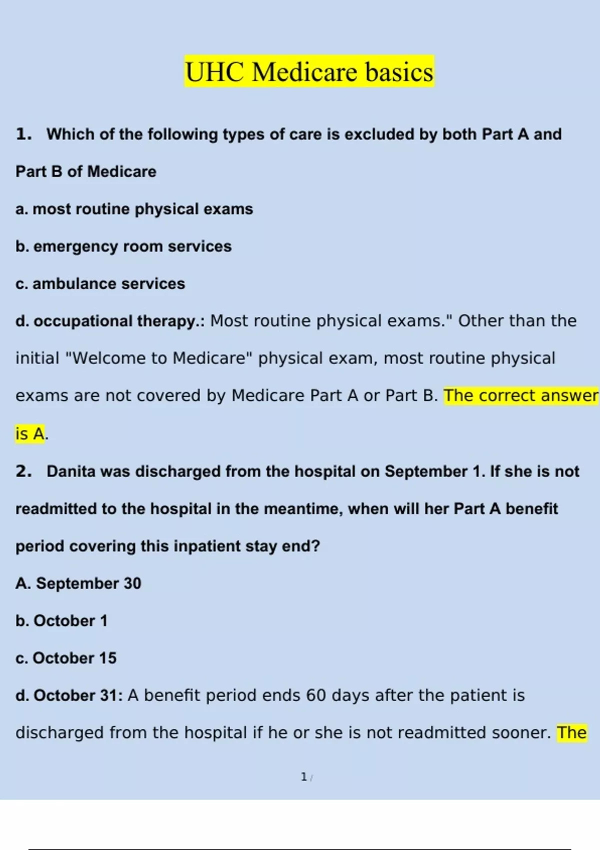 UHC Medicare basics Exam | Questions with 100% Correct Answers | Verified | Updated 2024