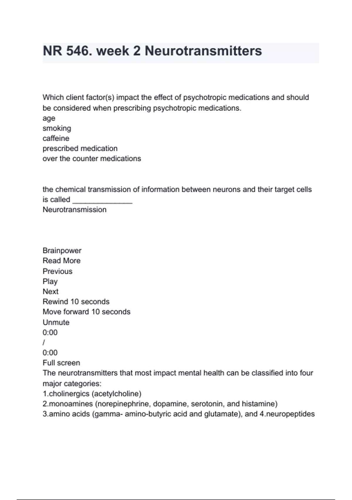 NR 546. week 2 Neurotransmitters Q&A solved
