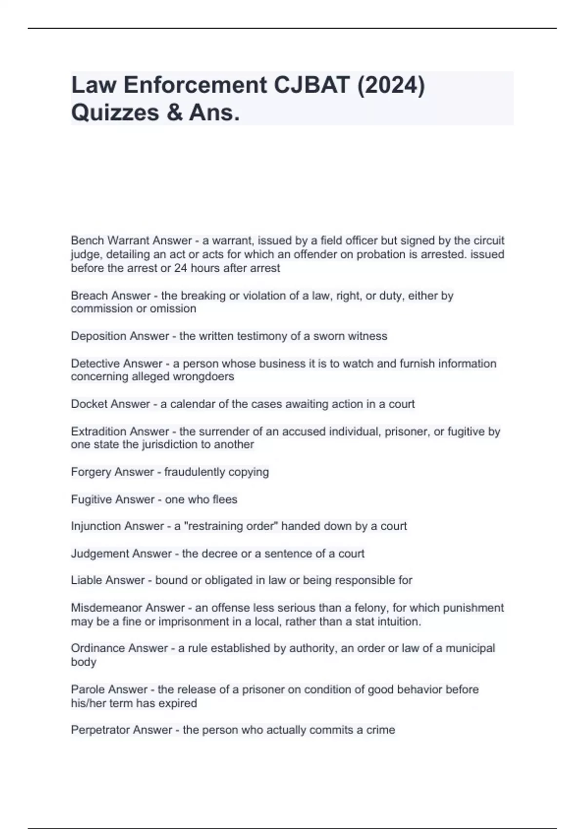Law Enforcement CJBAT (2024) Quizzes & Ans.