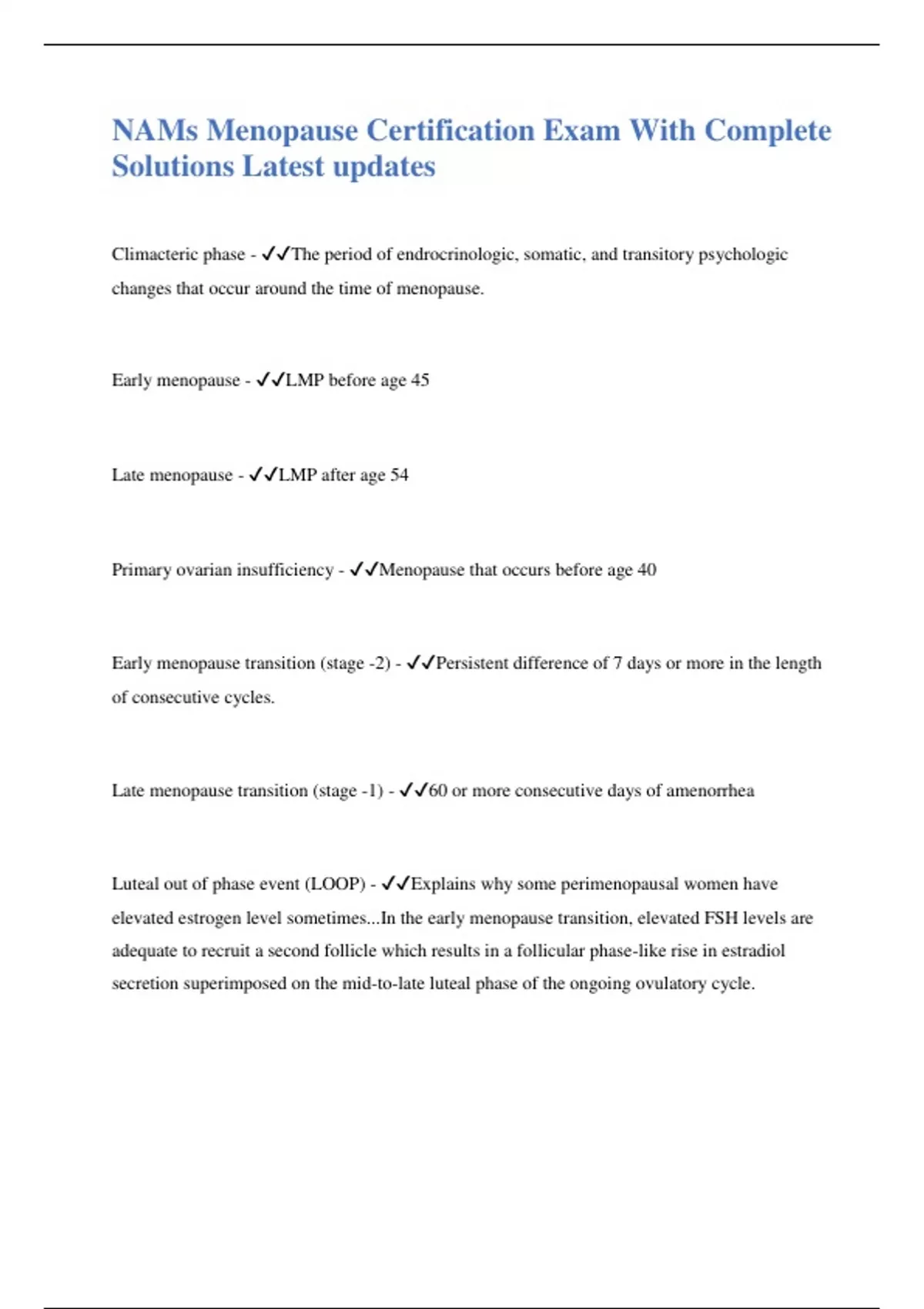 NAMs Menopause Certification Exam With Complete Solutions Latest updates